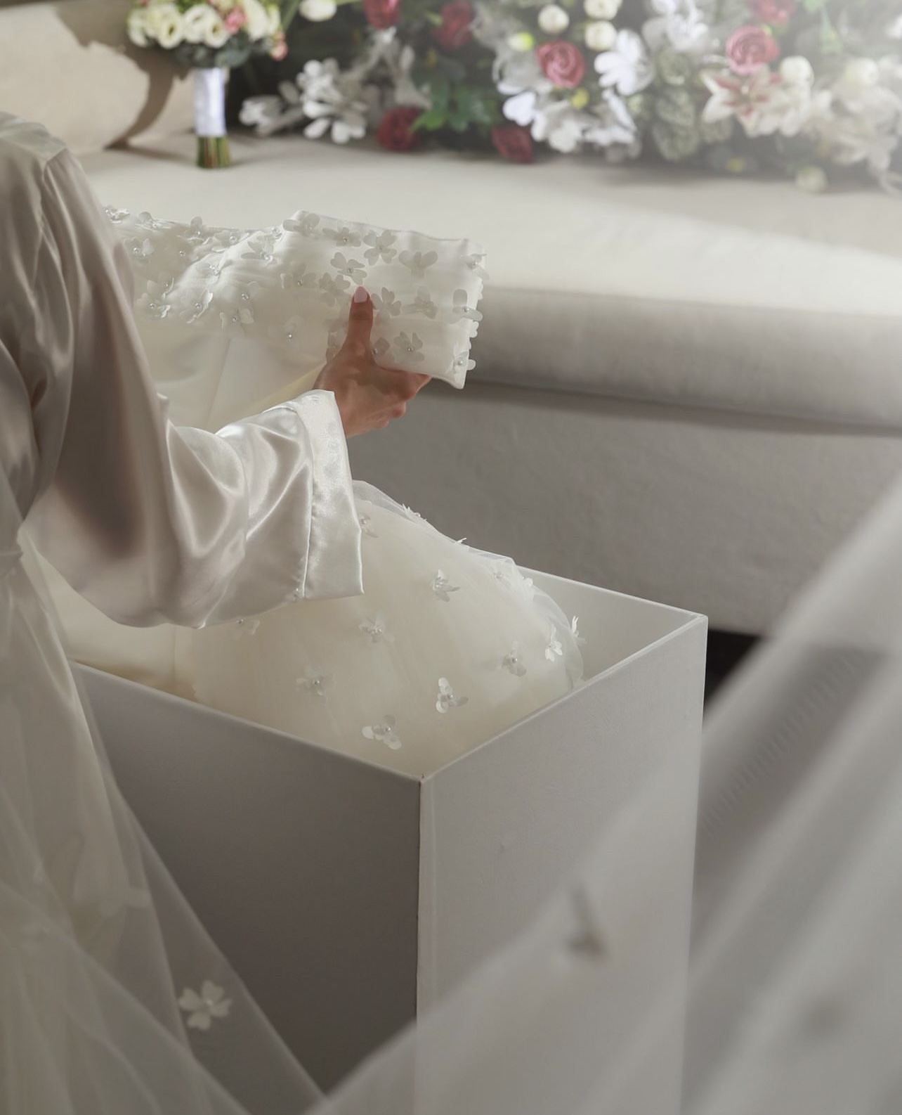 During your appointment, our experienced team will guide you through a personalized session based on your style, preferences, and vision. Try on selected designs, explore silhouettes, and see what suits you best for your special day. You’re welcome to invite your friends and enjoy an intimate, celebratory experience in the showroom.