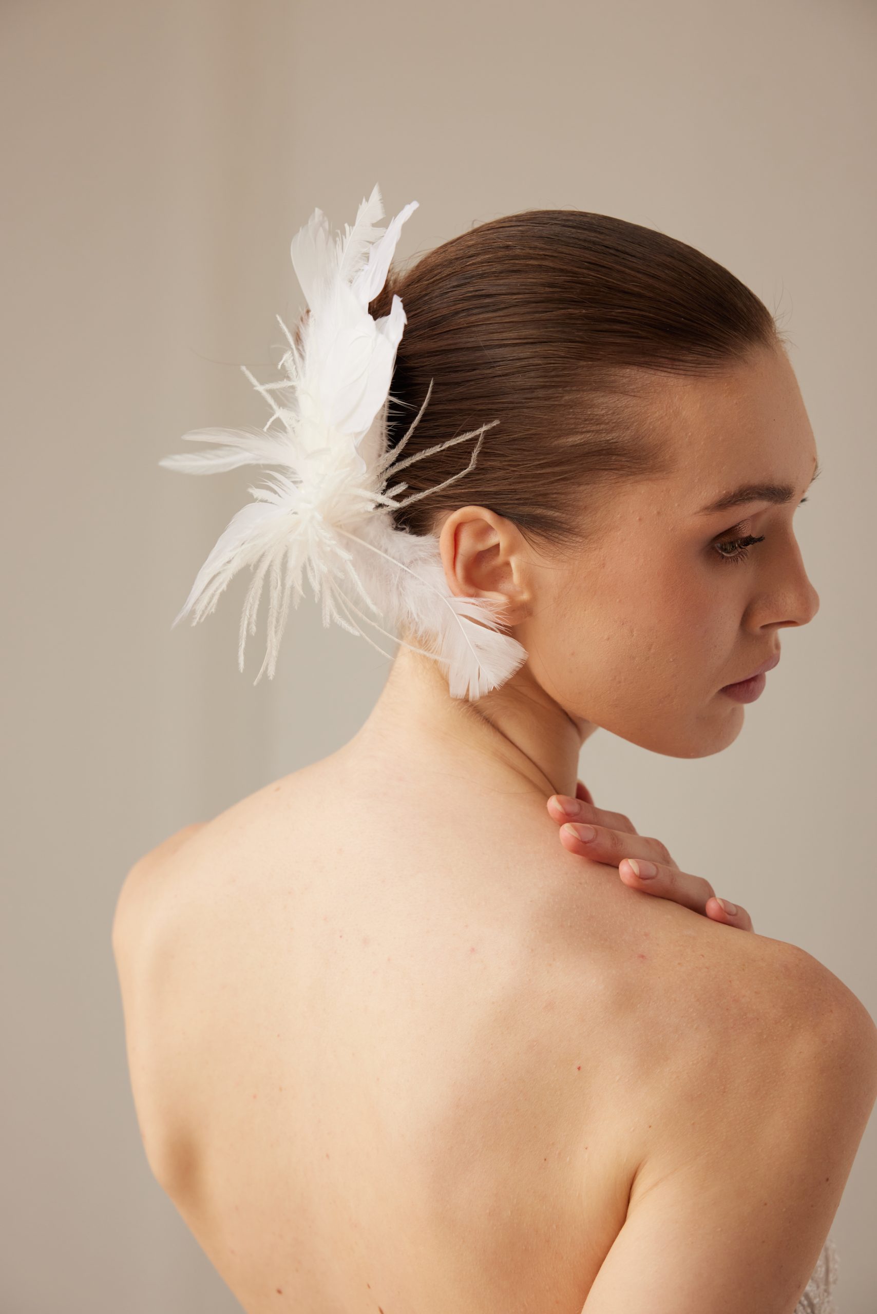 This elegant feather-detailed headpiece brings a soft, ethereal touch to any bridal or special-occasion look. Crafted with carefully selected feathers, it creates a sense of movement and lightness while adding a statement of refined beauty. The design blends delicate texture with graceful volume, making it an ideal accessory for modern, romantic, or bohemian styles. Lightweight and comfortable, it pairs beautifully with updos, loose waves, or sleek hairstyles. Perfect for those seeking a unique piece that embodies elegance, softness, and timeless charm.