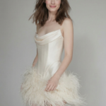 Refined corsetry shapes the body before dissolving into a soft feather finish. A striking balance between control and fantasy.