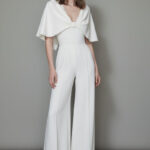 Usta işçilikle şekillenen yapı, beli vurgulayarak silueti uzatırken, kesik omuz pelerin detayı tasarıma mimari bir yumuşaklık kazandırır. Yapı ve drapenin dengeli birlikteliği, rafine bir couture duruşu yaratır.