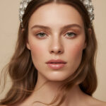 Its lightweight structure ensures all-day comfort, while its subtle sparkle elevates any bridal look with a chic and graceful finish.