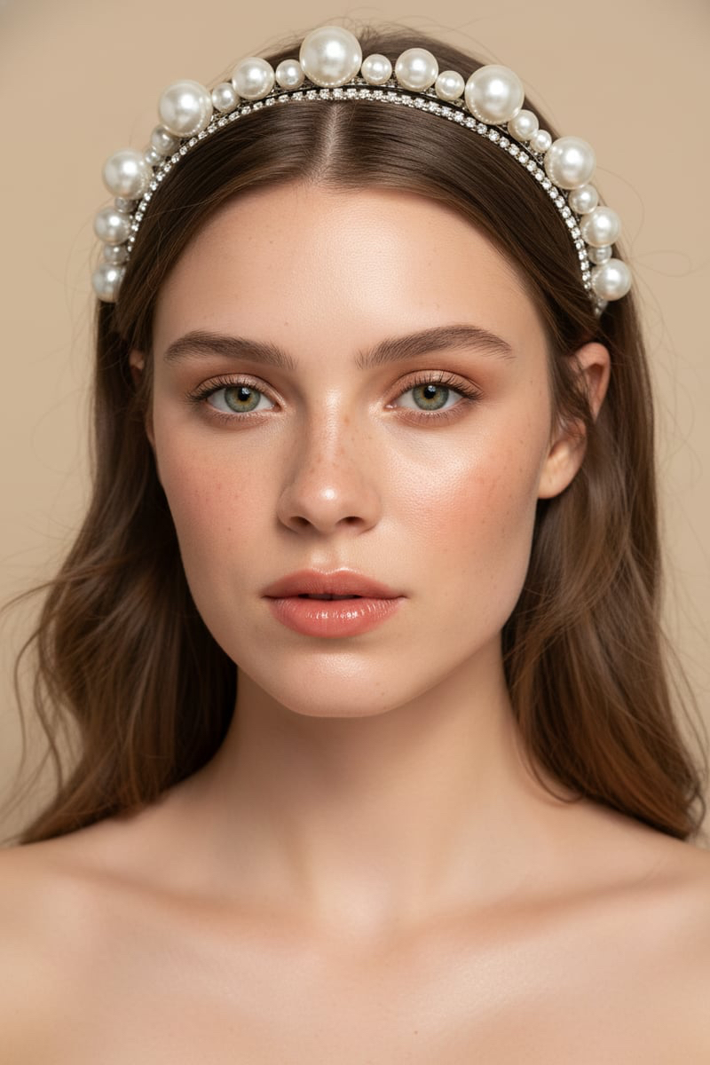 LUMERA is an elegant pearl headband designed with oversized and micro pearls arranged in a modern, sculptural silhouette. Its glossy finish and subtle sparkle add a sophisticated touch to bridal and evening looks. Lightweight, comfortable, and statement-making—perfect for contemporary brides who want classic pearls with a bold twist.