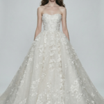 Zarif çiçek dantellerle tasarlanan bu görkemli prenses gelinlik, kalp yaka straplez üst kısmıyla feminen ve romantik bir ifade sunar. Hacimli eteği, üç boyutlu aplikeler ve ince dantel dokularıyla zenginleşerek dramatik ve masalsı bir silüet yaratır. Couture inceliğiyle taçlanan güçlü ve zarif bir gelinlik görünümü arayanlar için ideal bir seçimdir.