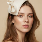A refined, sculptural fascinator crafted in soft ivory with an elegant looped design that curves gracefully above the head. Its modern, minimalist shape adds sophistication without overwhelming the look, making it perfect for weddings, formal events, or contemporary styling. Lightweight and delicately structured, it provides a comfortable fit while offering a striking visual statement.
