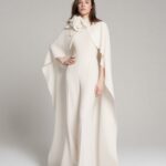 Temiz çizgiler ve akışkan hareketle tanımlanan şık bir gelin tulumu. Yumuşak drapeli pelerin ve çiçek detayı, gücü ve feminenliği zarif bir dengede buluşturur.