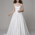 Bel hattını zarif şekilde vurgulayan belirgin korse üstüyle dikkat çeken bu straplez gelinlik, hacimli ve akıcı eteğiyle hareket ve görkem kazandırır. Modern duruşu zamansız zarafet ile buluşturan güçlü ve şık bir gelin görünümü sunar.