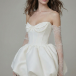 Usta korsaj işçiligiyle gövde kusursuz bir hassasiyetle şekillenirken, yapılandırılmış ancak hareketli etek tasarıma dinamizm katar. İllüzyon dantel kollar, gücü romantik bir hafiflikle dengeleyerek kolları zarifçe çerçeveler.
